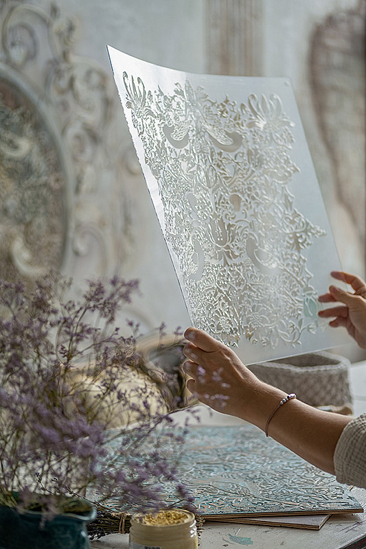 Многоразовый трафарет идеально подходит для различных областей применения, таких как мебель, ткань, штукатурка, декор, покраска и стены.