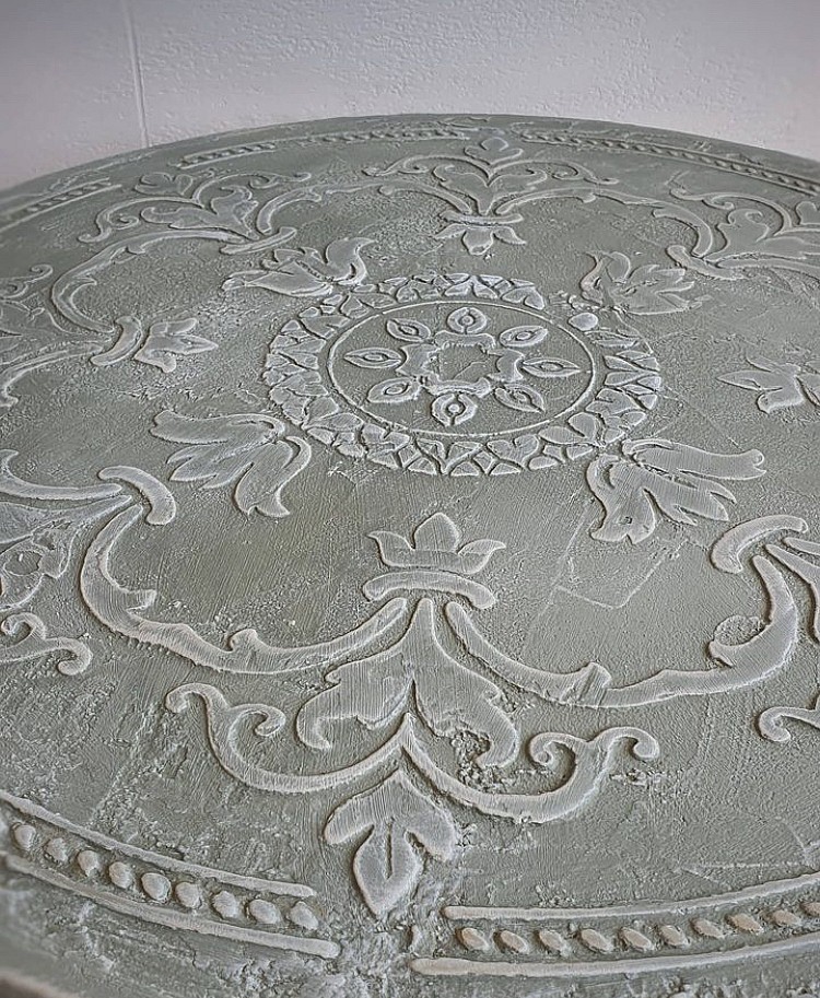 Если хочешь сразу шикарный эффект, надо купить этот трафарет, что я и сделала! Декорировала столик, получилось идеально! Трафарет достаточно плотный, очень хорошо лежит на поверхности, я даже ничем не фиксировала. А потом я использовала этот трафарет для декорирования тумбочки. Получилось тоже прекрасно. Теперь мой любимый трафарет! И меня совершенно покоряете упаковка - не просто в конверте или пакете, а специальная папка из оргалита для хранения.